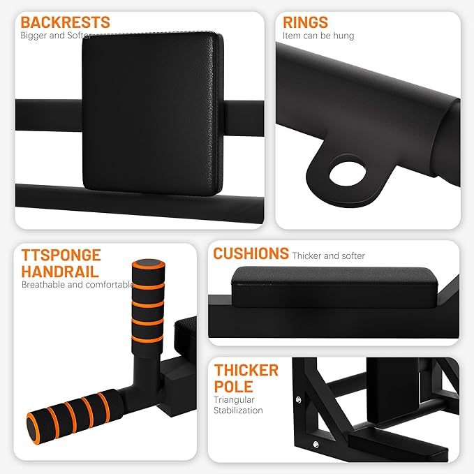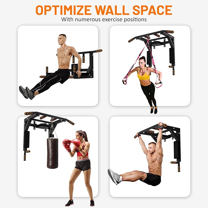 - Multi-Function Workout Station: This pull up bar wall mounted is designed for a variety of upper body exercises, including pull-ups, dips, and chin-ups. The sturdy construction allows for a diverse workout routine right at home.