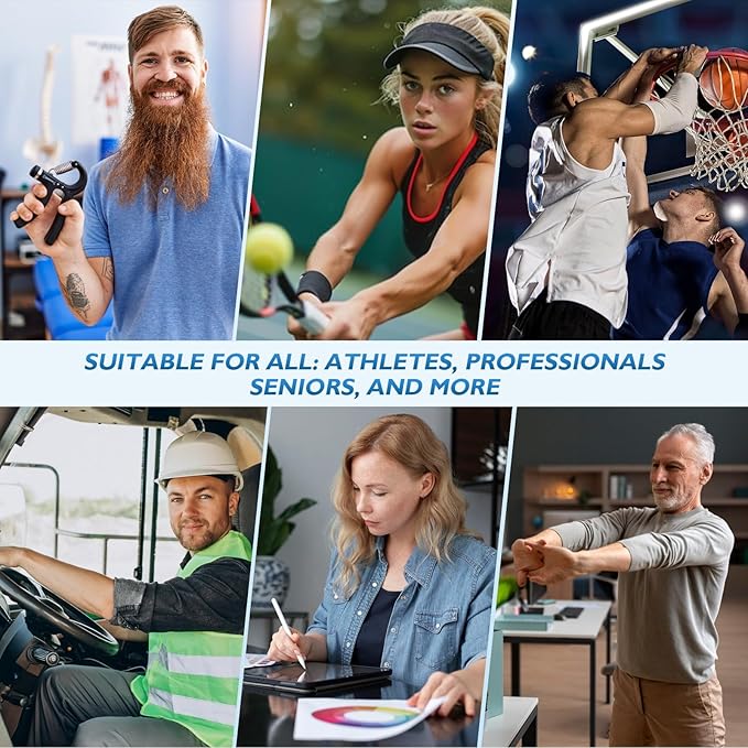 - 𝗩𝗲𝗿𝘀𝗮𝘁𝗶𝗹𝗲 𝗳𝗼𝗿 𝗩𝗮𝗿𝗶𝗼𝘂𝘀 𝗔𝗰𝘁𝗶𝘃𝗶𝘁𝗶𝗲𝘀 — Suitable for a wide range of activities including strength training, rehabilitation, sports, and stress relief. Perfect for musicians, office workers, athletes, and seniors who need to maintain hand strength and dexterity.