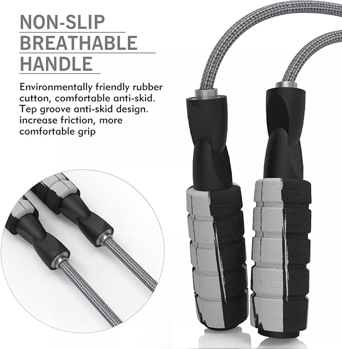 • Foam Handle: Comfortable handle makes it easy to grasp and carry, which makes your hands feel comfortable and non-slip during skipping,instantly motivates your excersize goals