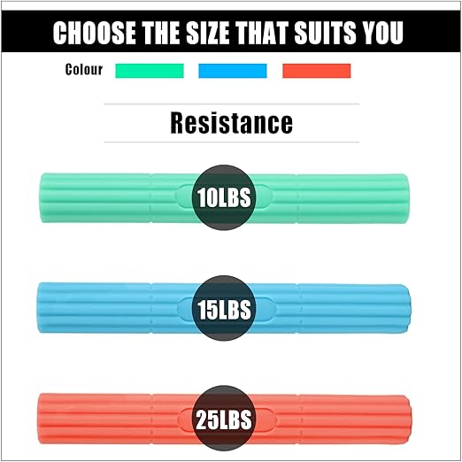 - Suitable for All Fitness Levels:Flex therapy bar is 12 inches long and made of tpr material,the weibaihe exercise bar provides different levels of grip resistance. The green resistance is 10 pounds, the blue resistance is 15 pounds, and the red resistance is 35 pounds. Whether you are a beginner who just started exercising or a warrior who loves healthy exercise,you can choose to match the resistance that suits you, step by step,and achieve challenges and goals.