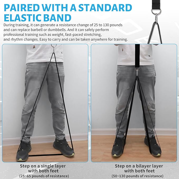 - It comes with a standard elastic band that produces 25 to 130 lbs. of resistance change during training, and can be used in place of barbell plates or dumbbells. And you can safely perform specialized training such as weight change simulations, quick burst stretches, and resistance intensity tempo changes. Realizes easy portability and can be taken anywhere for training.