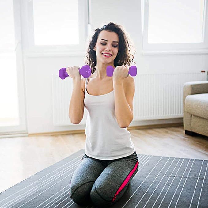 - ๐ANTI-SLIP NEOPRENE: The thick, durable neoprene coating provides a comfortable grip, eliminating the need for gloves. Additionally, the coating forms a protective barrier that prevents the dumbbells from chipping and protects the floor from damage.