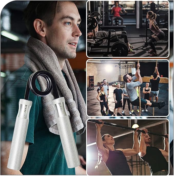 - Durable Construction & Quality Material: This hand grip is made of durable knurled aluminum handles and high quality springs for a long-lasting workout tool. The aluminum handles are strong and lightweight, durable and safe, it will not damage your hands and fingers, which will bring you an excellent exercise experience.
