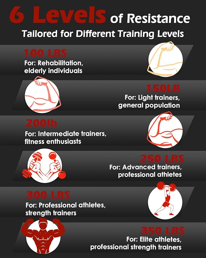 - 6 Pack Grip Trainers: Hozzen offers two different trainer sets. This grip strengthener set offers an advanced version with 6 levels of resistance (100, 150, 200, 250, 300, 350 lbs), to meet your strength training needs. Effectively train finger, palm, wrist and forearm muscles to improve grip strength and make your arms stronger and stronger