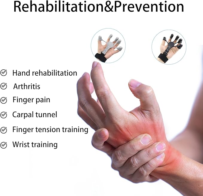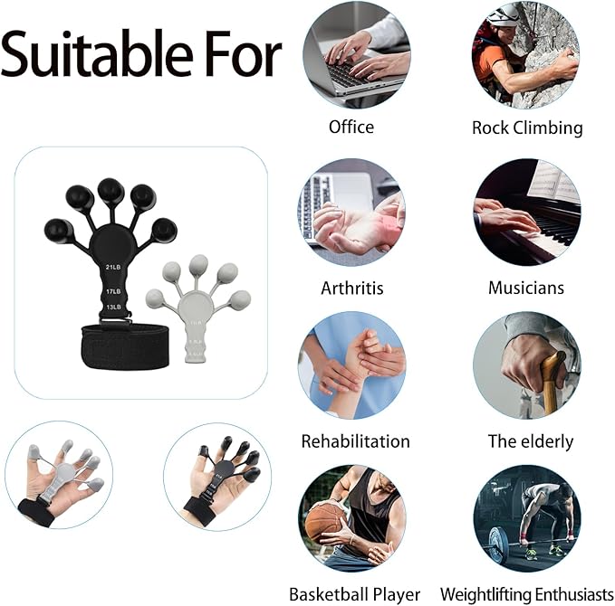 - Resistance Levels Finger Stretcher: Grip strength trainer package include 1 black and 1 grey finger resistance band, 2 adjustable wrist straps, 2 hand strengthener comes with two wrist straps for more convenient to exercise