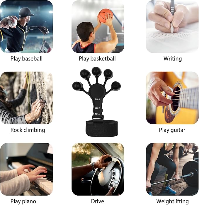 - Ideal for Sports Lovers: The grip strength trainer can improve the finger strength of athletes (rock climbing, tennis, fitness, baseball, boxing) and musicians (pianist, guitar, bass and violinist) and daily housework ( writing, driving, typing, working, etc). It’s perfect gift for athletes and musicians